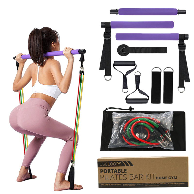 Professional 3-section detachable steel bar with 6 adjustable latex bands. Versatile design for high-intensity home training and professional studio use with full OEM branding options.