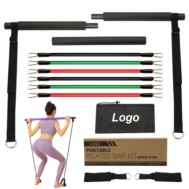 Professional 3-section detachable steel bar with 6 adjustable latex bands. Versatile design for high-intensity home training and professional studio use with full OEM branding options.