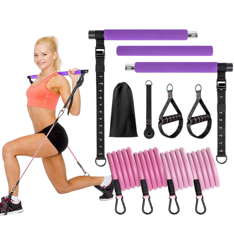 Featuring a 3-section heavy-duty steel bar and 6 reinforced resistance bands. This all-in-one set includes premium handles and ankle straps, designed for high-intensity training and professional fitness studios.